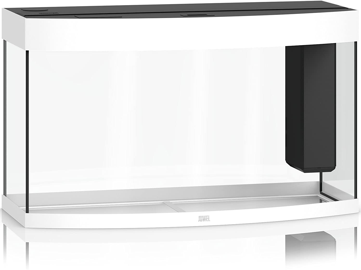 Juwel acuario VISION LED 180 con frontal curvo equipado con iluminación led 2x742mm de ultima generación: alterna leds blancos y azules para amplio espectro de luz, carcasa de aluminio para una mejor disipación del calor y cristal de protección para evitar filtraciones de agua al interior. 100% estanco. Equipado con filtro interior Bioflow M completo con bomba 600 l/h y termocalentador 200 W. Medidas: 92x41x55 cm. Capacidad 180 L Disponible en 2 colores: blanco y negro. Los colores madera clara y madera oscura disponibles bajo encargo. Opcional mueble madera a conjunto. Fabricado en Alemania.