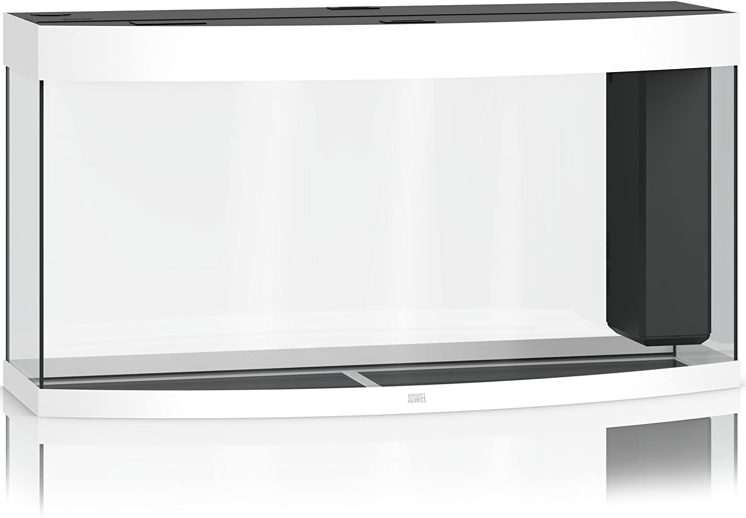 Juwel acuario VISION LED 260 con frontal curvo equipado con iluminación led 2x1047mm de ultima generación: alterna leds blancos y azules para amplio espectro de luz, carcasa de aluminio para una mejor disipación del calor y cristal de protección para evitar filtraciones de agua al interior. 100% estanco. Equipado con filtro interior Bioflow L completo con bomba 1000 l/h y termocalentador 300 W. Medidas: 121x46x64 cm. Capacidad 260 L Disponible en 2 colores: blanco y negro. Los colores madera clara y madera oscura disponibles bajo encargo. Opcional mueble madera a conjunto. Fabricado en Alemania.