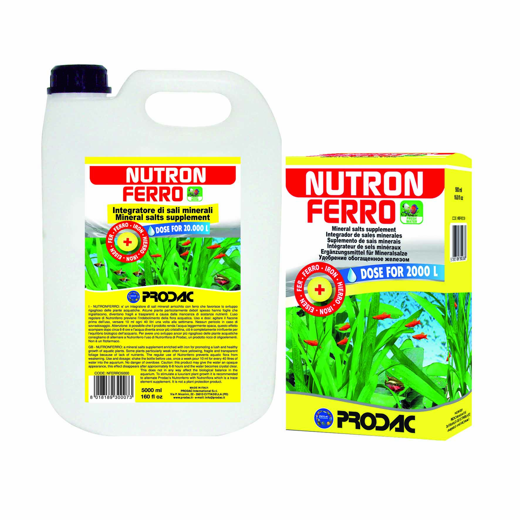 Prodac nutronferro es un abono líquido rico en hierro que favorece el pleno desarrollo de las plantas acuáticas. Algunas plantas particularmente débiles presentan hojas amarillentas y se vuelven frágiles y transparentes debido a la falta de nutrientes. El uso regular de nutronferro previene el debilitamiento de la flora acuática. Verte 5 ml por cada 50 litros de agua una vez a la semana. Se recomienda el uso combinado con Prodac Nutronflora. Envase de 100 ml