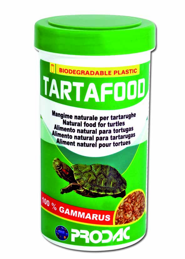 Prodac tartafood, alimento 100% natural de gammarus indicado para las tortugas acuáticas de agua dulce rico en calcio (4,5%) Envase de 400 ml con 400 gr Empleo: suministrar una o dos veces al día una pizca de comida en el comedero o directamente en el agua en cantidad de 2,5 gr cada 100 gr de peso de la tortuga. Composición: 100% Invertebrados acuáticos (gammarus pulex). Componentes analíticos: proteína bruta 47,37%, ceniza bruta 20,86%, grasa bruta 9,40%, fibra bruta 5,75%, calcio 4,5%, humedad 7,67%.